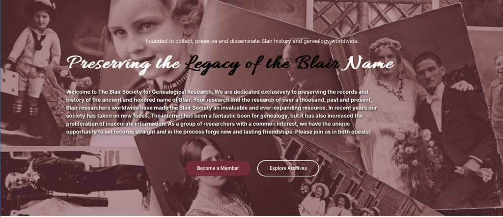 Discover the rich history of the Blair Family by becoming a member of the BSGR and find valuable tools and references to aid your genealogical research journey.
